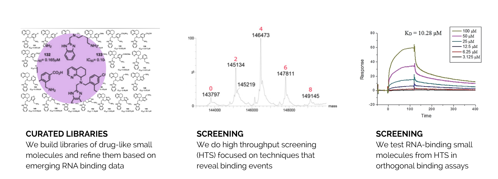 The result is a robust RNA-targeted small molecule (rSM) discovery workflow to identify small molecules that selectively and potently bind specific RNA substructures and form the basis of rSM modalities that interrupt RNA structure-function to treat disease.